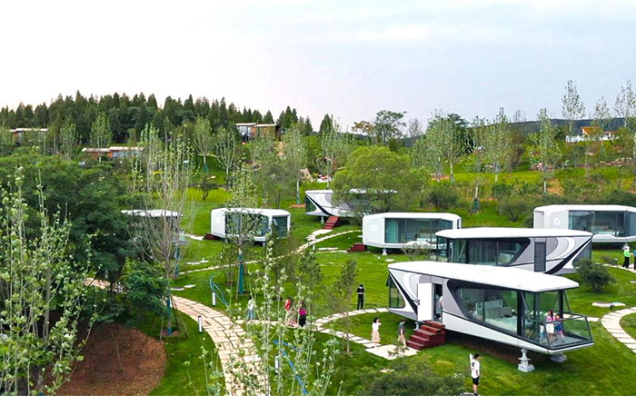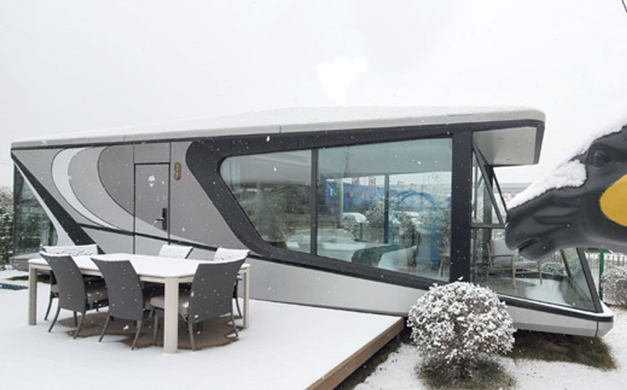 Rover space capsule house consists the seismic steel frame as the foundation,aviation aluminum-alloy ,silicone weather-prooofing sealant and vacuum glass are applied to exterior structure. The internal decoration consists premium wood grain lock floor and bamboo fiber board ceiling. Whole house integrated intelligent control system provide a smart and convinient life style to user.